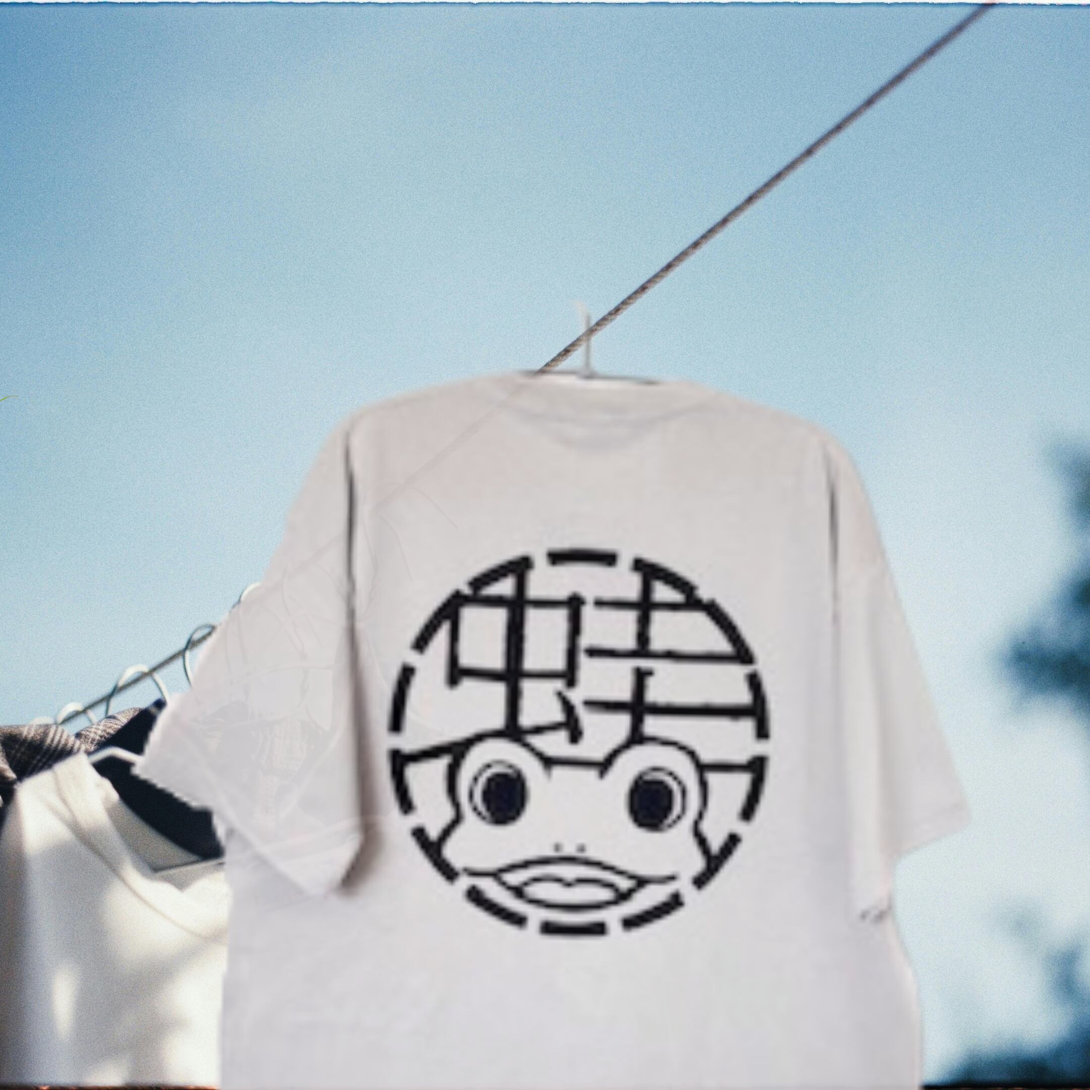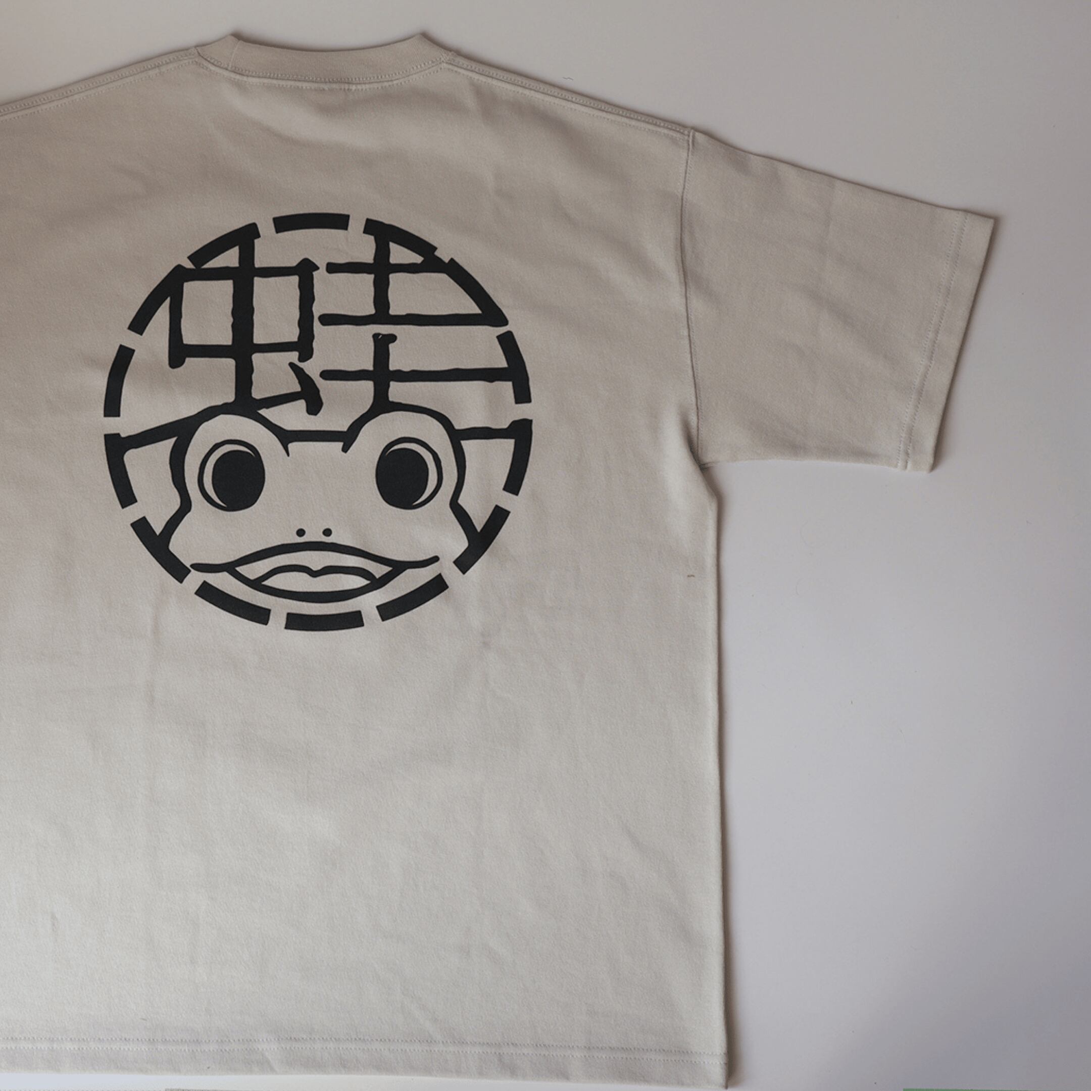 福かえるTシャツ | ビッグシルエット フロストグレー 背中にオリジナルプリント Mサイズ