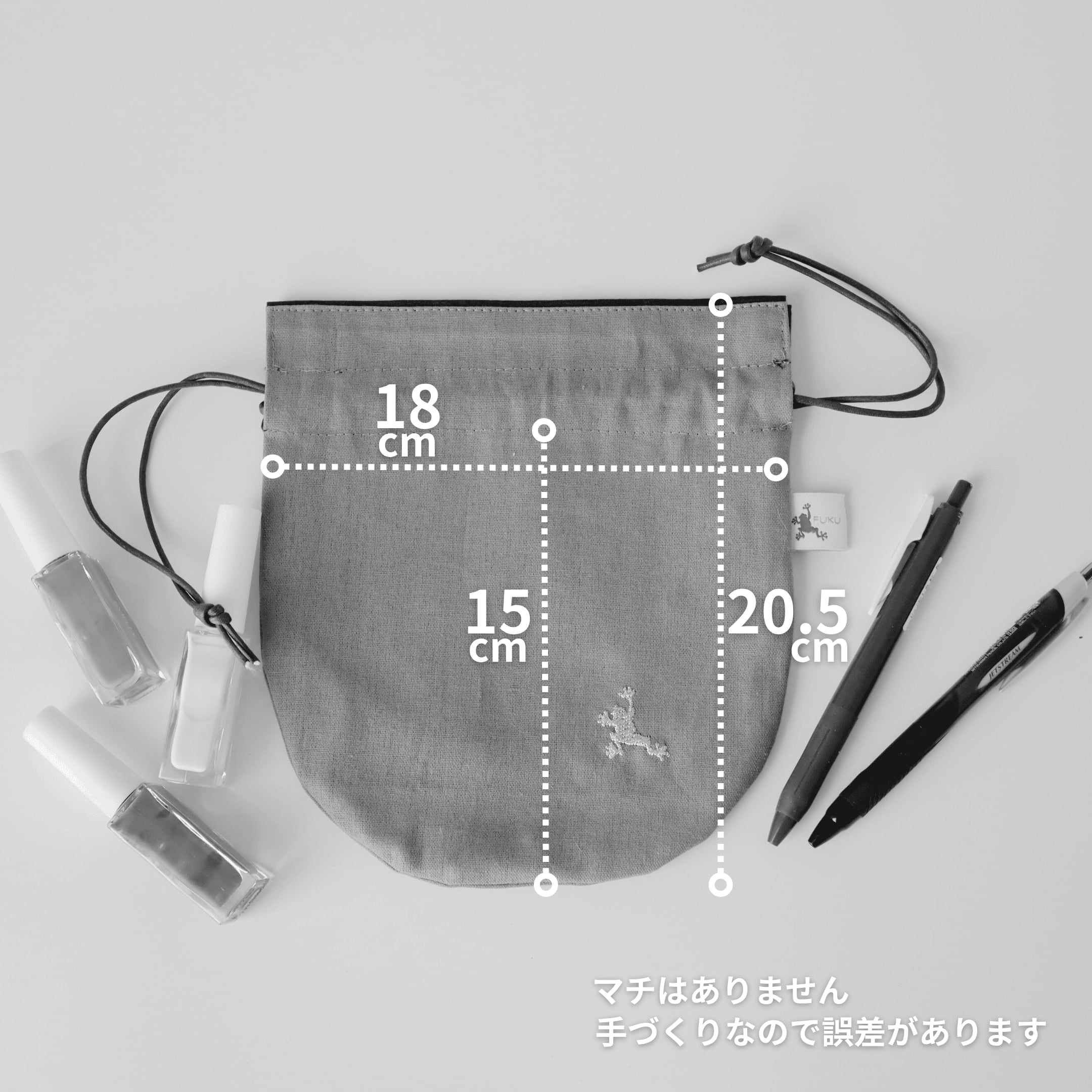 サイズ:収納部分 約 縦15cm × 横18cm(マチなし)