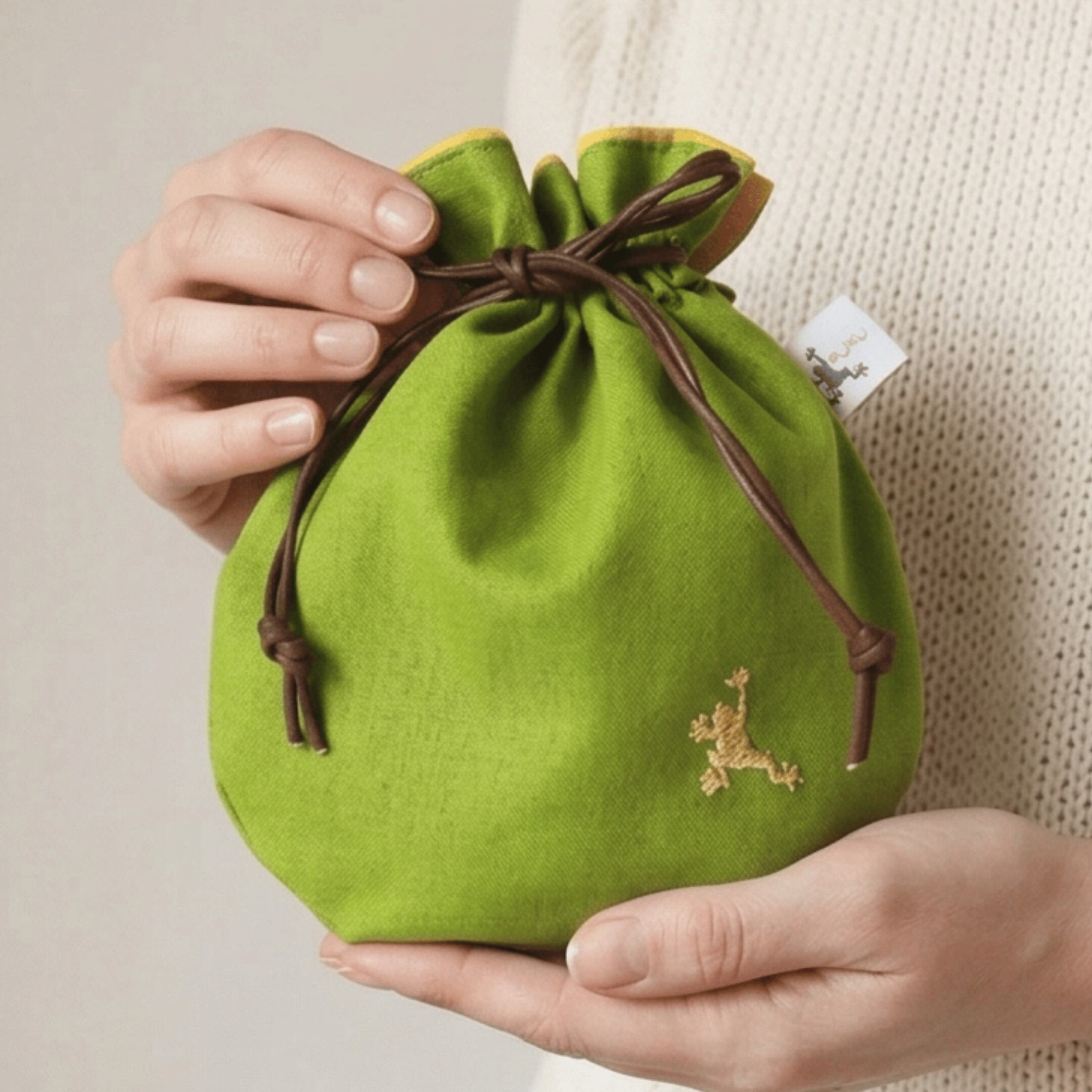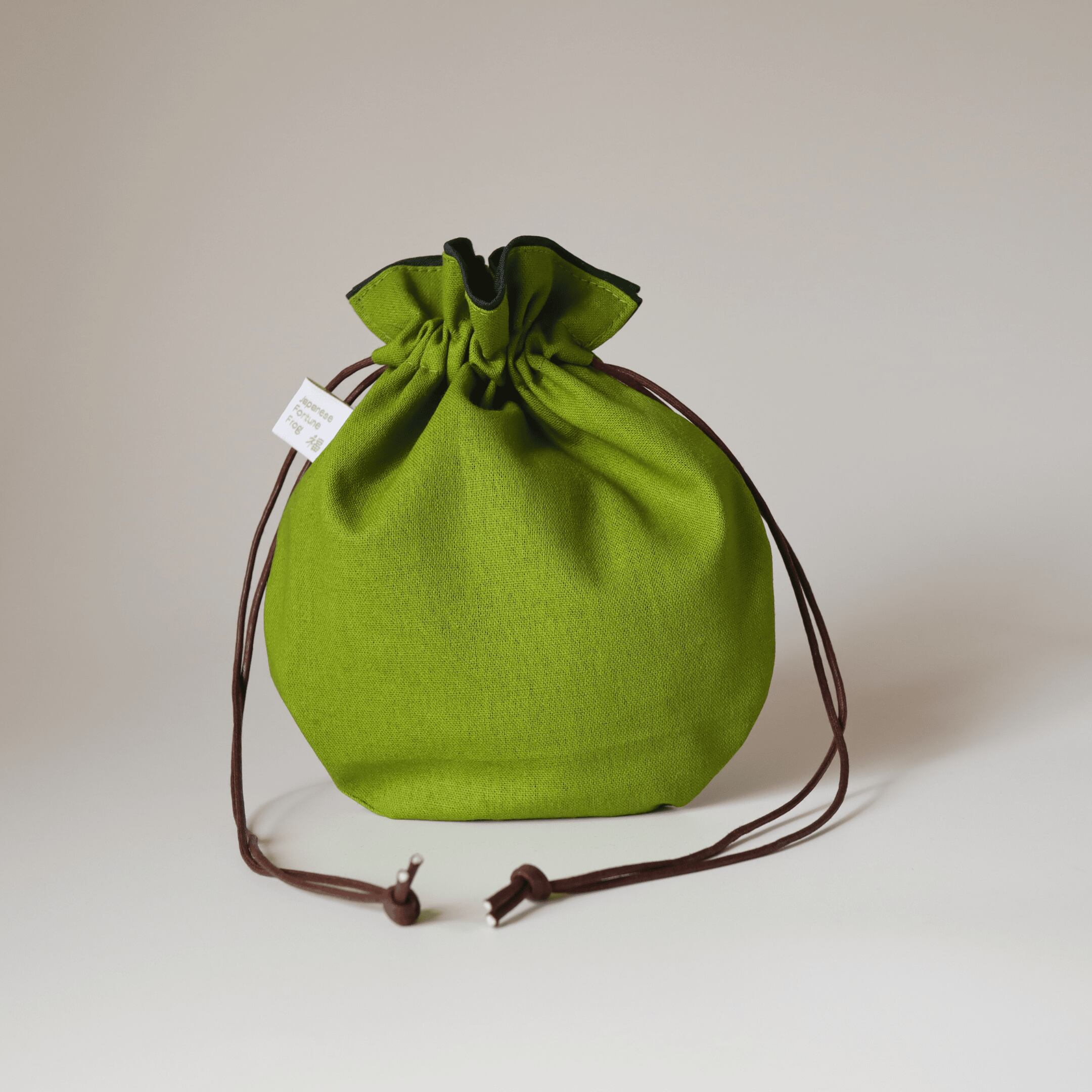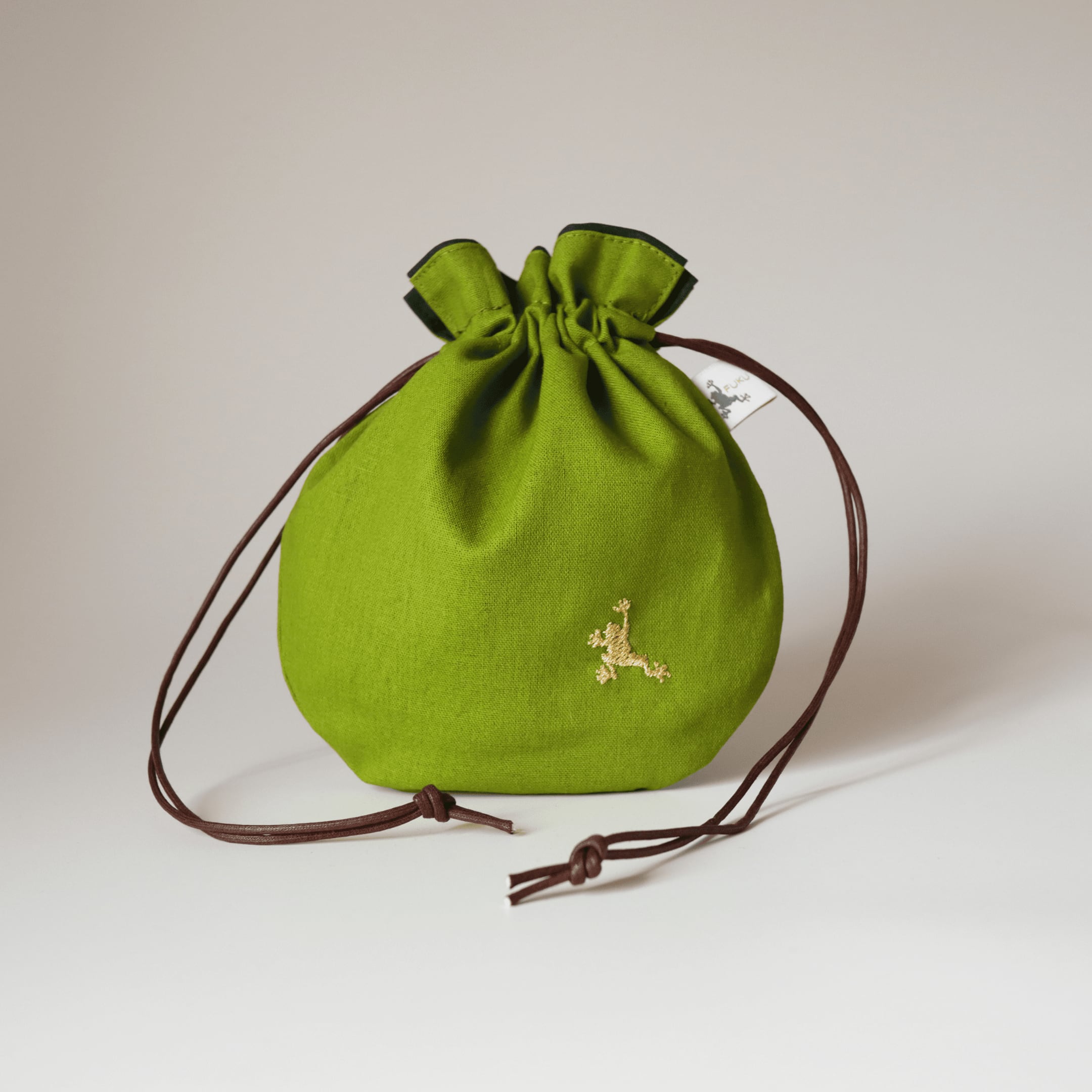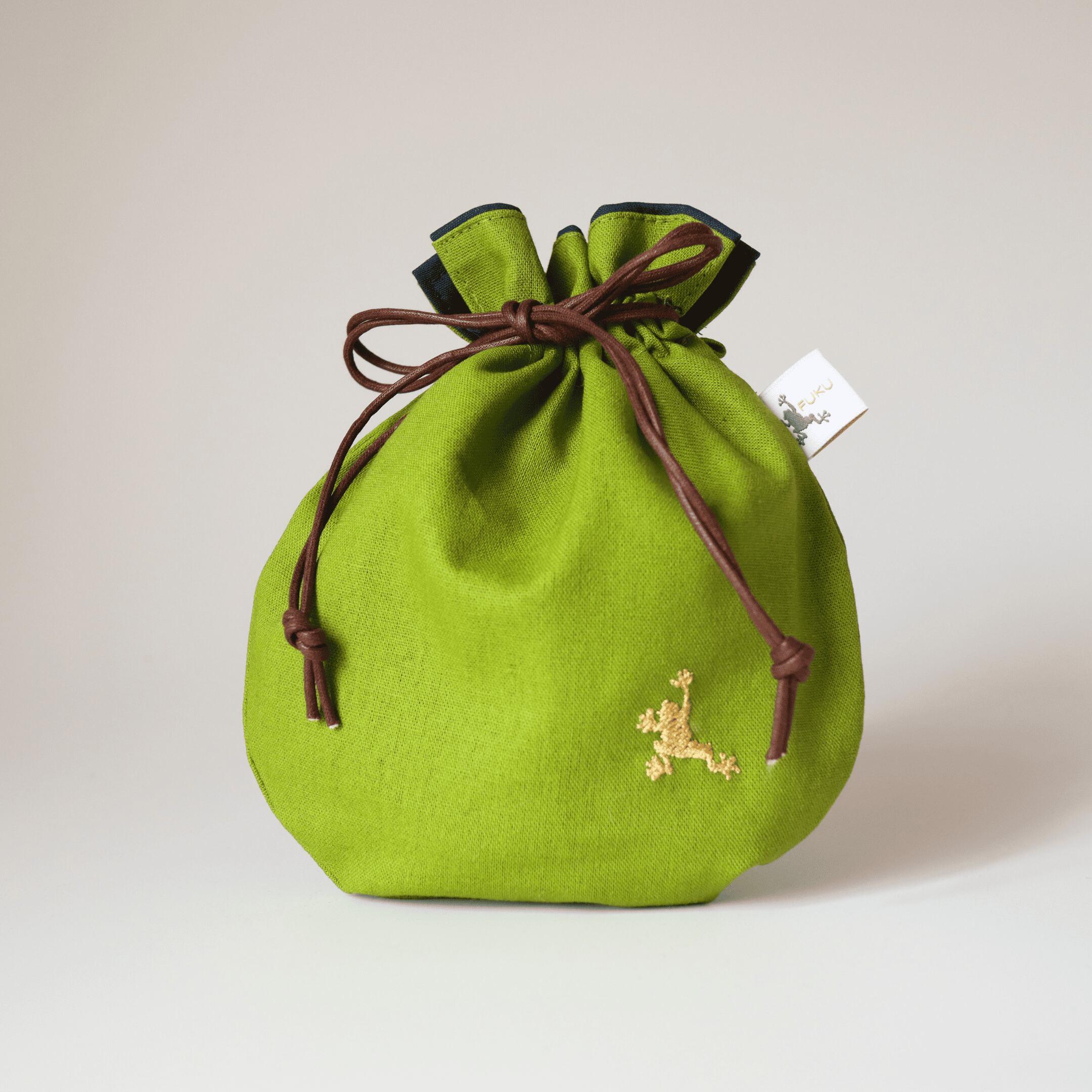静かに寄り添う“福かえる”の巾着袋。銭袋。